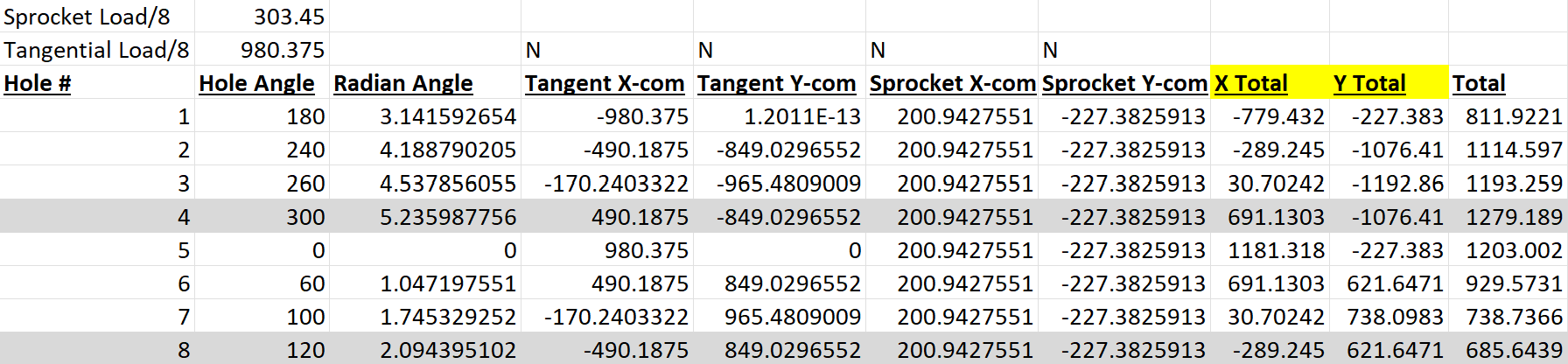 Calculated the load on the individual bolt holes, inferred the load on the reaction bolts, and chose AN3 bolts.