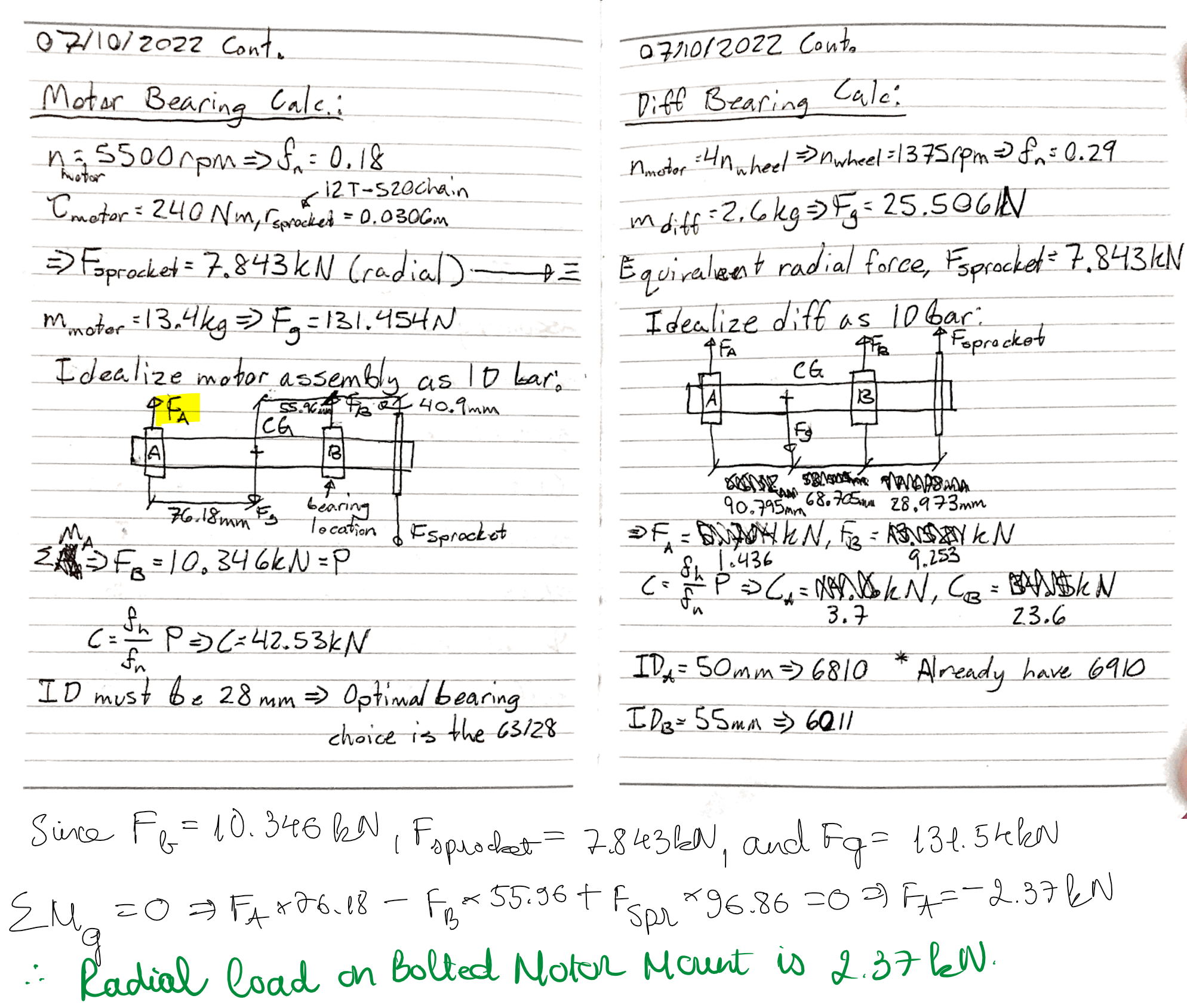 Calculations of the loads on the left and right mount, therefore deriving at the right bearing to use